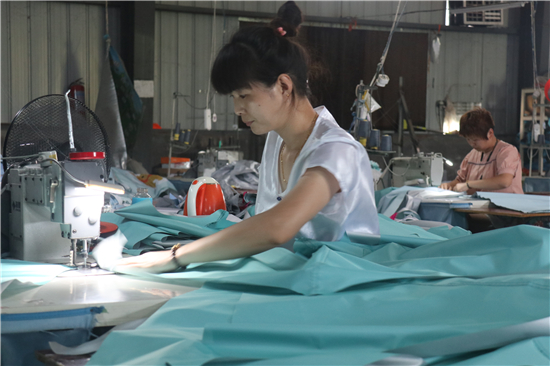 陣雨過后,趙腰莊村,平添了幾分意境。貧困戶盧衛(wèi)紅吃過早飯,便來到村里的快樂游戶外用品廠里工作,每月收入有3000多元,像她這樣在廠里工作的有100多人。走入趙腰莊村仿佛進入工廠村,這樣的廠子有十幾家,實現(xiàn)300多人就業(yè),其中貧困戶就有數(shù)十人。