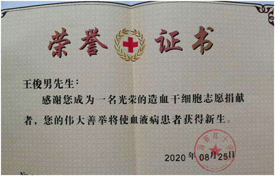 這些年來,王俊男捐獻造血干細胞的心愿一直沒有改變,他曾多次到西華縣紅十字會查詢催問他的骨髓匹配是否成功。幸運的是,今年6月以來,王俊男先后接到通知,他和一名白血病患者初步匹配成功,詢問他是否愿意捐獻造血干細胞。電話這端,王俊男堅定地說:“捐,一定要捐,捐獻能給人治病救命,也是我為扶貧做貢獻的機遇,一直是我15年來的心愿!”