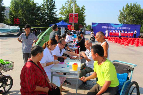 儀式現(xiàn)場,多家單位負(fù)責(zé)人宣讀了“提升健康素養(yǎng) 樂享銀齡生活”倡議書。儀式結(jié)束后,現(xiàn)場舉行大型義診、健康咨詢、文藝表演等活動。市、區(qū)醫(yī)療單位設(shè)立13個咨詢服務(wù)臺,圍繞“提升健康素養(yǎng) 樂享銀齡生活”活動主題,現(xiàn)場普及老年健康知識,通過擺放健康知識展版、發(fā)放健康宣傳折頁、提供健康咨詢和現(xiàn)場義診服務(wù)等形式,為老年人提供量血壓、測血糖、測視力、等健康服務(wù)。針對常態(tài)化疫情防控中對老年人的生活照顧、健康管理、醫(yī)養(yǎng)結(jié)合、慢性病預(yù)防等內(nèi)容,結(jié)合老年人特點,圍繞營養(yǎng)膳食、運動健康、心理健康、合理用藥等方面展開科普宣傳指導(dǎo),普及老年健康科學(xué)知識和老年健康相關(guān)政策。叮囑老人做好居家衛(wèi)生,出門戴口罩,做好個人防護(hù),并針對老年人常見的高血壓、糖尿病、冠心病等,給予健康評估和健康指導(dǎo),讓廣大老年人切身感受到社會的關(guān)懷和溫暖,提高了老年人的健康素養(yǎng),收到了良好的社會效果。