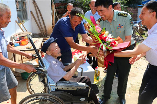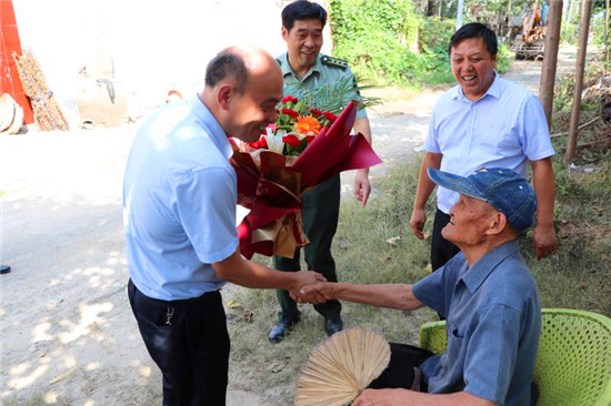 今年,是中國(guó)人民抗日戰(zhàn)爭(zhēng)暨世界反法西斯戰(zhàn)爭(zhēng)勝利75周年。太康縣委常委、縣人武部部長(zhǎng)于永前,縣退役軍人事務(wù)局黨組書記、局長(zhǎng)潘布道日前先后來(lái)到高賢、楊廟等鄉(xiāng)鎮(zhèn)走訪慰問(wèn)抗日老戰(zhàn)士,開展“敬獻(xiàn)一束鮮花、表達(dá)一聲問(wèn)候、送上一份禮品、備一個(gè)健康包、拍一張合影留念照片”“五個(gè)一”活動(dòng),把黨和政府的關(guān)懷溫暖送到老戰(zhàn)士的心坎上。
