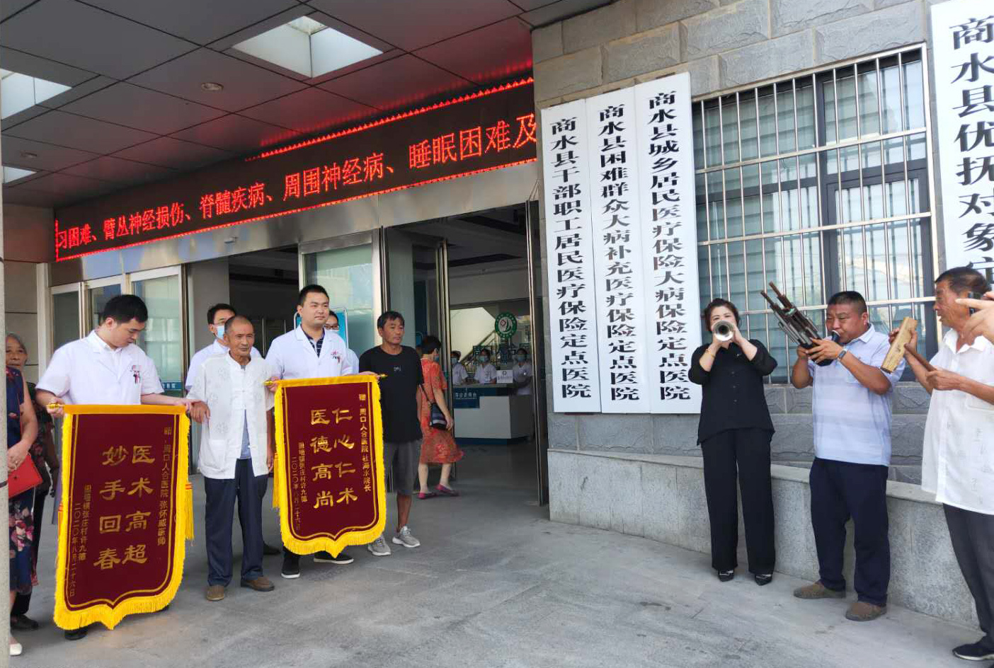 “醫(yī)術(shù)醫(yī)風(fēng)醫(yī)德好,俺給好醫(yī)生送錦旗”,歡快高昂的嗩吶聲響徹周口人合醫(yī)院急診部門前,嗩吶手以歡快的音樂表達(dá)著感激的話語(yǔ),8月27日上午10時(shí),來自商水縣固墻鎮(zhèn)張莊村的許九德老人帶著家人和一班嗩吶手,來到周口人合醫(yī)院送來錦旗,以農(nóng)民最樸實(shí)的方式表達(dá)自己的謝意。