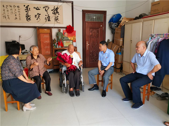 為紀(jì)念中國人民抗日戰(zhàn)爭暨世界反法西斯戰(zhàn)爭勝利75周年,9月1日,太康縣委常委、組織部長于闐鎮(zhèn)看望慰問抗戰(zhàn)離休干部,向他們致以崇高的敬意和誠摯的問候,感謝他們?yōu)辄h和國家作出的貢獻(xiàn),并祝愿他們健康長壽,生活幸福。太康縣委組織部副部長張玉潔、縣軍人事務(wù)局局長潘布道、老干部活動中心負(fù)責(zé)人牛春艷陪同慰問。