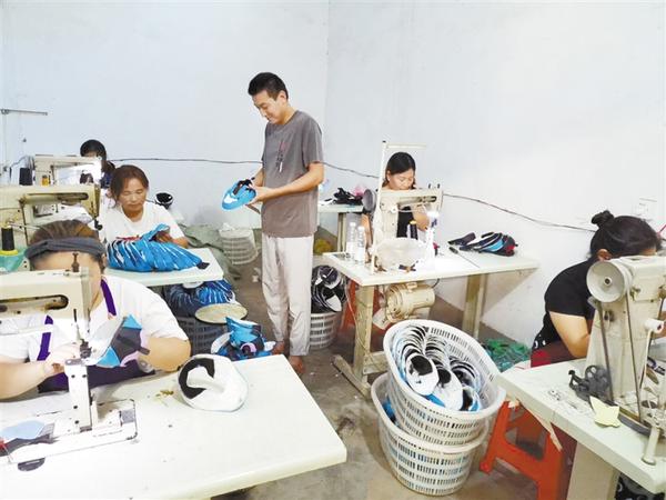 太康縣有為青年孫錦博致富不忘鄉(xiāng)鄰,2017年,他返鄉(xiāng)在轉樓鎮(zhèn)創(chuàng)辦了太康縣飛躍鞋業(yè)有限公司,產品出口到南非等國家,讓群眾實現了掙錢、顧家兩不誤。圖為車間一角。