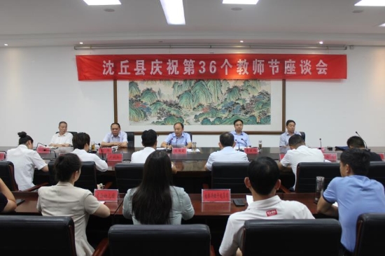 9月8日,沈丘縣召開第36個教師節(jié)座談會??h領(lǐng)導(dǎo)劉國慶、賈慶偉、馬偉、閆開興、柳致遠(yuǎn)出席座談會,相關(guān)部門負(fù)責(zé)人和各鄉(xiāng)鎮(zhèn)中心校校長、局管學(xué)校校長、部分教師代表參加了座談會。