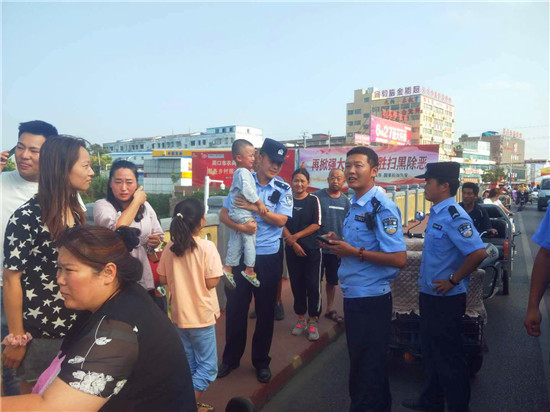 2020年9月1日16時(shí)許,特巡警大隊(duì)青年突擊隊(duì)隊(duì)長(zhǎng)李驍帶隊(duì),沿潁河大道向南巡邏至沈丘大閘南頭時(shí),一群眾抱著一個(gè)兩三歲的男孩慌慌張張前來求助,該男童與父母走散,大哭不止。