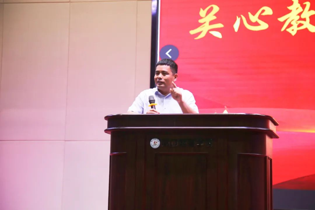 新星學(xué)校董事長劉永文作回憶了自己辦學(xué)的艱辛歷程和初心,講了自己作為一名老師至今對教師崗位的眷戀和熱愛;表達了對教師這個群體的深情,表達了他對教師群體要盡綿薄之力的心愿。他的講話真誠坦率,侃侃而談,贏得了一陣陣掌聲。
