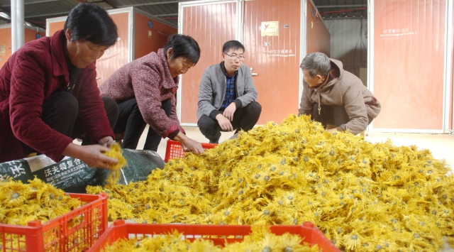 11月9日,在商水縣郝崗鎮(zhèn)大路李村金絲皇菊種植合作社,鎮(zhèn)干部楊占民了解貧困戶金絲皇菊種植情況。該鎮(zhèn)在脫貧攻堅中,積極牽線搭橋,幫助大路李村委負(fù)責(zé)人李華生引進(jìn)種植金絲皇菊,帶動貧困戶脫貧致富。