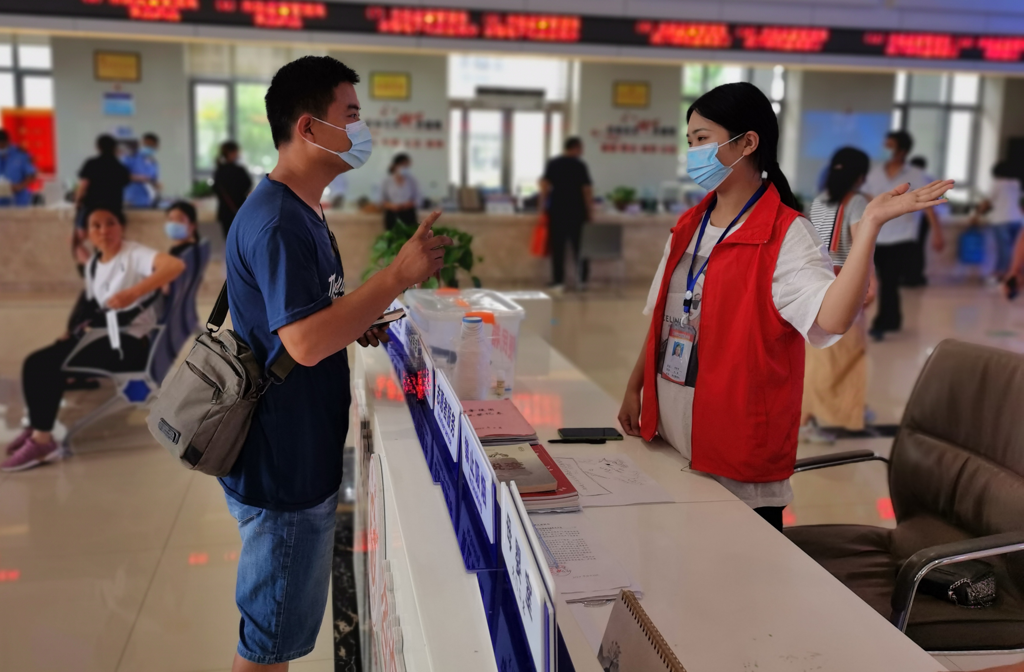 市民在向周口市行政服務(wù)中心大廳的志愿咨詢問題