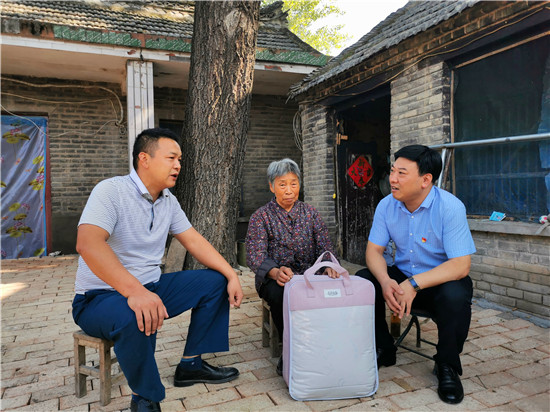 上午9時許,張永政一行攜帶大米、礦泉水、紙抽、蠶絲被等慰問品來到王國輝家,對王國輝獲得榮譽表示祝賀,并與王國輝的母親切交談。張永政向王國輝母子傳達了省信用聯(lián)社黨委書記王勇的親切慰問。張永政說:“前不久,省信用聯(lián)社黨委書記王勇來周口調(diào)研時,十分掛念王國輝的家庭和村集體生產(chǎn)經(jīng)營情況,專門囑托他要向王國輝學(xué)習(xí)并前往慰問,要與田營村搞好金融對接,開啟黨建聯(lián)盟,全力做好金融后盾。”