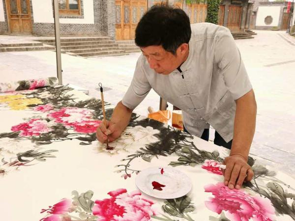 受郭泰森影響,村里不少農(nóng)民也想學(xué)習(xí)畫牡丹,在當(dāng)?shù)卣闹С趾蛶椭?,郭泰森舉辦了牡丹畫免費(fèi)培訓(xùn)班、畫師培訓(xùn)班,參加培訓(xùn)的學(xué)員場(chǎng)場(chǎng)爆滿。如今,平樂(lè)鎮(zhèn)牡丹畫師已發(fā)展到1000余名,形成了包括培訓(xùn)創(chuàng)作、裱畫包裝、推介營(yíng)銷、研學(xué)旅行等相對(duì)完整的產(chǎn)業(yè)鏈,帶動(dòng)相關(guān)從業(yè)人員5000余人。