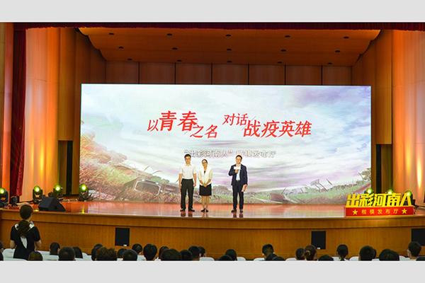 活動(dòng)化疫情危機(jī)為教育契機(jī),以“出彩河南人”楷模發(fā)布廳特別節(jié)目為藍(lán)本,以開放式思政課為主要模式,以先進(jìn)典型事跡為支撐點(diǎn),通過“情景再現(xiàn)+互動(dòng)交流+點(diǎn)評(píng)總結(jié)”的方式,邀請(qǐng)河南省出席全國抗擊新冠肺炎疫情表彰大會(huì)的先進(jìn)代表與青年學(xué)生交流,分享現(xiàn)場感受,暢談心得體會(huì),為學(xué)生上了一堂愛國主義教育課、思想政治理論課、科學(xué)精神養(yǎng)成課,引導(dǎo)學(xué)生與時(shí)代同步伐、與人民共命運(yùn)、同祖國共成長。此外,活動(dòng)還突出典型人物與學(xué)生互動(dòng),回答學(xué)生現(xiàn)場提問和網(wǎng)絡(luò)留言,引導(dǎo)學(xué)生分享自己和身邊的典型故事,用藝術(shù)形式展示呈現(xiàn),激勵(lì)師生堅(jiān)持遠(yuǎn)大理想、擔(dān)負(fù)時(shí)代使命、書寫絢麗華章,在偉大祖國復(fù)興的壯闊征程激揚(yáng)青春力量、放飛絢爛夢想。