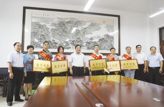 9月10日,太康縣委書記王國璽(左五)深入家印高中調(diào)研教育教學(xué)工作,看望劉桂華、沈東、劉建國、王予超、焦文林5位“教育功臣”,送去慰問金、鮮花和獎杯牌匾,并向全縣廣大教師和教育工作者致以節(jié)日的祝賀和誠摯的慰問??h委常委、辦公室主任張雪芳,縣教體局黨組書記張俊峰、局長葛澤周,縣教體局黨組副書記、家印高中校長沈世弘,縣教體局副局長孫傳海等參加活動。圖為合影留念。