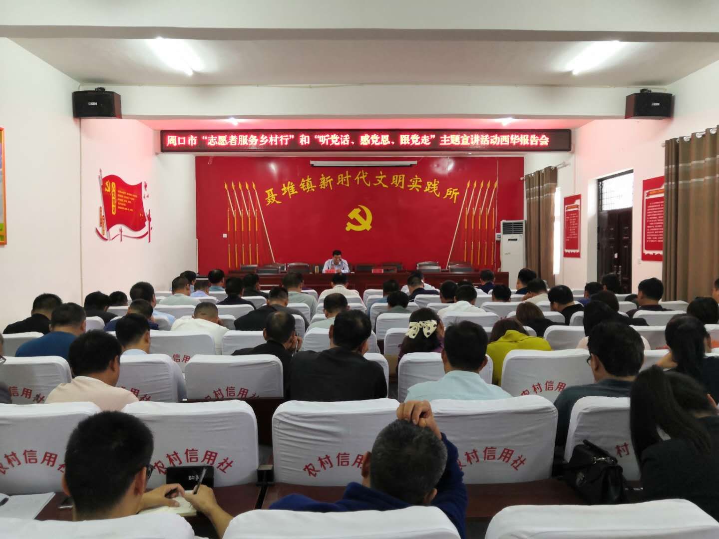 9月23日上午,周口市“志愿服務(wù)鄉(xiāng)村行”和“聽黨話、感黨恩、跟黨走”主題宣講活動(dòng)西華報(bào)告會(huì)在聶堆鎮(zhèn)新時(shí)代文明實(shí)踐所舉行。報(bào)告會(huì)邀請(qǐng)沈丘縣脫貧攻堅(jiān)領(lǐng)導(dǎo)小組辦公室主任、沈丘縣扶貧開發(fā)辦公室主任陳曉東作專題報(bào)告。鎮(zhèn)政府全體干部、駐村第一書記和工作隊(duì)長(zhǎng)、各行政村黨支部書記參加報(bào)告會(huì)。聶堆鎮(zhèn)黨委副書記、鎮(zhèn)長(zhǎng)劉輝主持報(bào)告會(huì)。