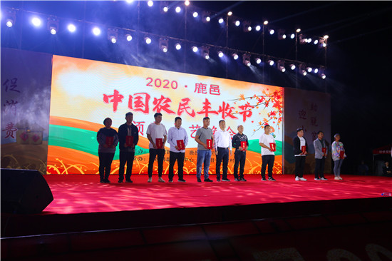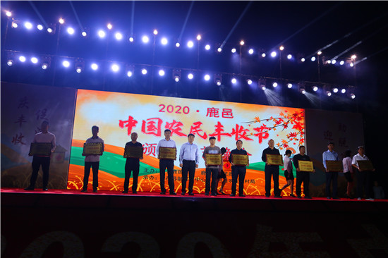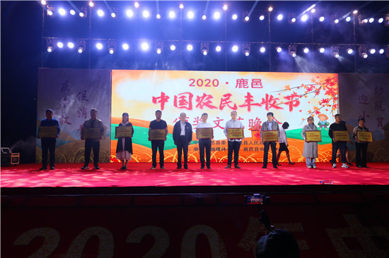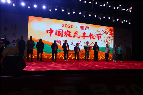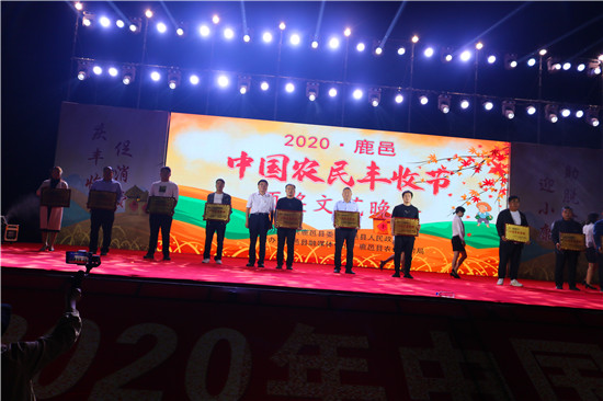 9月22日晚,由中共鹿邑縣委、鹿邑縣人民政府主辦的2020年鹿邑縣農(nóng)民豐收節(jié)文藝晚會在鹿邑縣文化中心廣場舉辦。晚會現(xiàn)場頒布了鹿邑縣“十佳家庭農(nóng)場”“十佳農(nóng)民合作社”“十佳特色農(nóng)產(chǎn)品品牌”“十佳返鄉(xiāng)創(chuàng)業(yè)脫貧致富帶頭人”“十佳脫貧致富先進個人”五項獎項,40名新型農(nóng)民(農(nóng)場、合作社)代表和10個特色農(nóng)產(chǎn)品品牌獲殊榮,他們用行動和產(chǎn)品充分展示了全縣現(xiàn)代農(nóng)業(yè)在過去一年中取得的輝煌成果??h領(lǐng)導雷申、楊所超、侯自峰、王曉征、張國慶、肖西國等出席豐收節(jié)晚會,并為獲獎者頒發(fā)榮譽證書和獎牌。