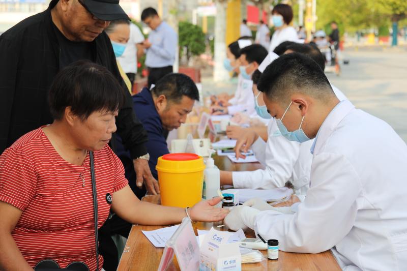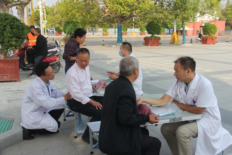 義診活動(dòng)現(xiàn)場(chǎng),通過(guò)懸掛主題宣傳橫幅、擺放健康知識(shí)宣傳展板、設(shè)置義診咨詢服務(wù)臺(tái)、發(fā)放健康促進(jìn)宣傳折頁(yè)等方式為群眾進(jìn)行健康知識(shí)宣教。前來(lái)咨詢就診的群眾絡(luò)繹不絕,醫(yī)務(wù)人員熱情地為群眾提供免費(fèi)測(cè)量血壓、血糖等服務(wù),耐心細(xì)致地解答群眾健康咨詢并給予診療建議,提醒平時(shí)多多加強(qiáng)鍛煉,注意健康飲食。
