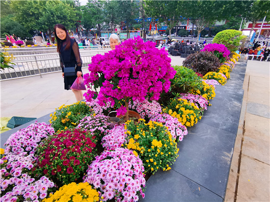 9月27日,在中心城區(qū)五一文化廣場,市民在鮮花盛開的花壇走過。“十一”臨近,五一文化廣場裝扮一新,各色花卉和造型樹木分布在廣場的各個方位的花壇內(nèi),吸引市民觀賞拍照。②9