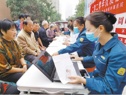 為滿足社區(qū)居民基本醫(yī)療衛(wèi)生服務(wù)需求,文昌社區(qū)衛(wèi)生服務(wù)中心開展了“優(yōu)質(zhì)服務(wù)基層行”活動,組織醫(yī)務(wù)人員走進(jìn)小區(qū),為居民進(jìn)行免費(fèi)健康體檢,并建立健康檔案。圖為9月25日,醫(yī)務(wù)人員在建業(yè)小區(qū)為居民測量血壓,并建立健康檔案。