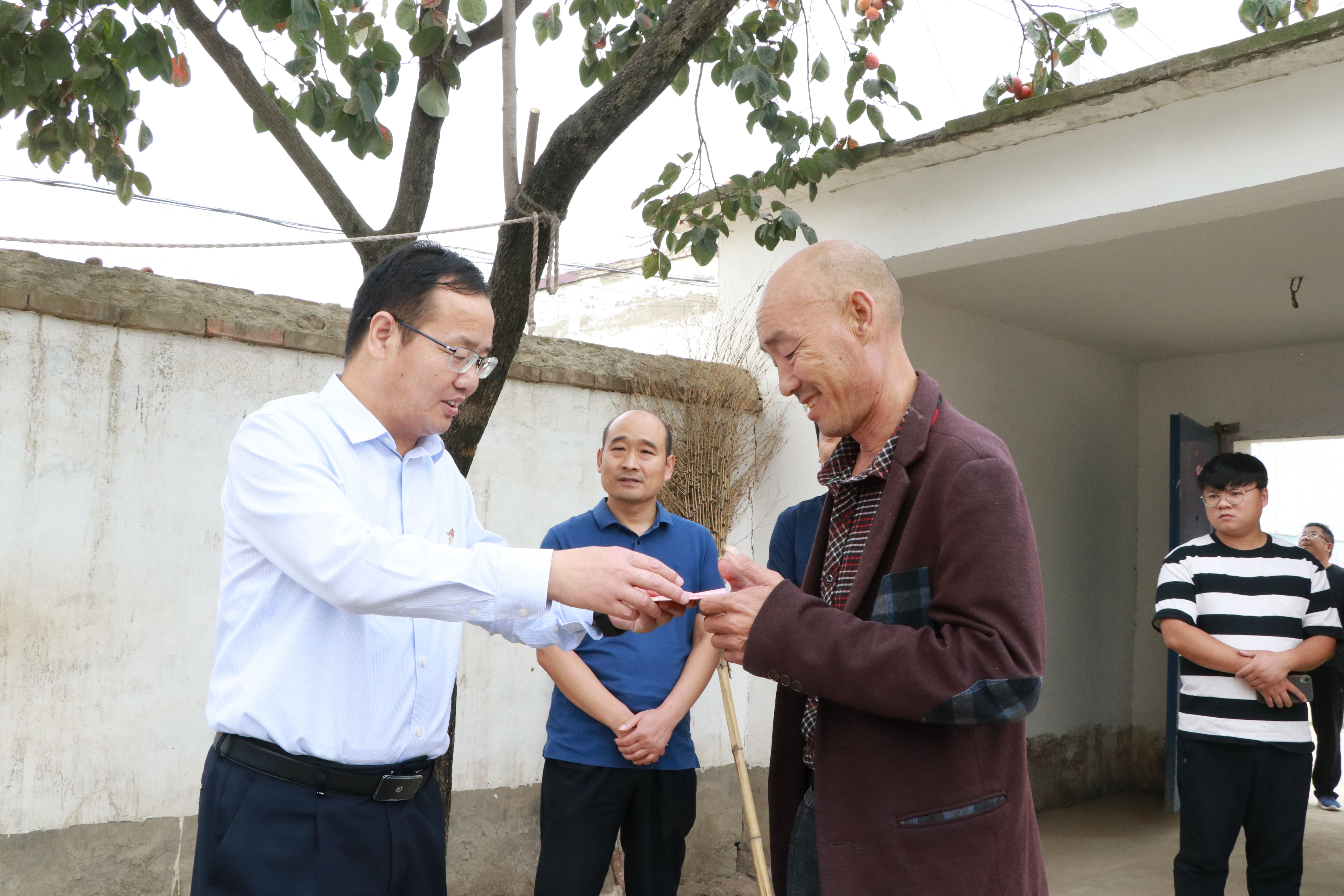 在一年一度中秋佳節(jié)來(lái)臨之際,為讓貧困戶過(guò)上一個(gè)祥和、溫暖、幸福的傳統(tǒng)佳節(jié),9月30日,市城鄉(xiāng)一體化示范區(qū)管委會(huì)主任張建黨帶領(lǐng)區(qū)直相關(guān)單位負(fù)責(zé)同志到搬口辦事處梁寨行政村走訪慰問(wèn)貧困群眾,向貧困戶送上節(jié)日的祝福和誠(chéng)摯的關(guān)懷。