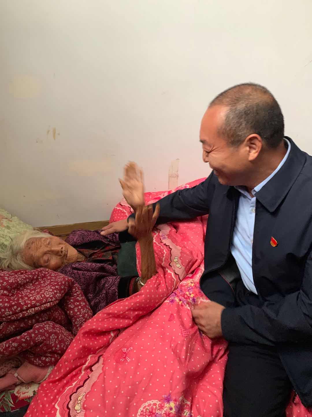 11時許,方凱一行來到大丁張村看望103歲的老人呂天。