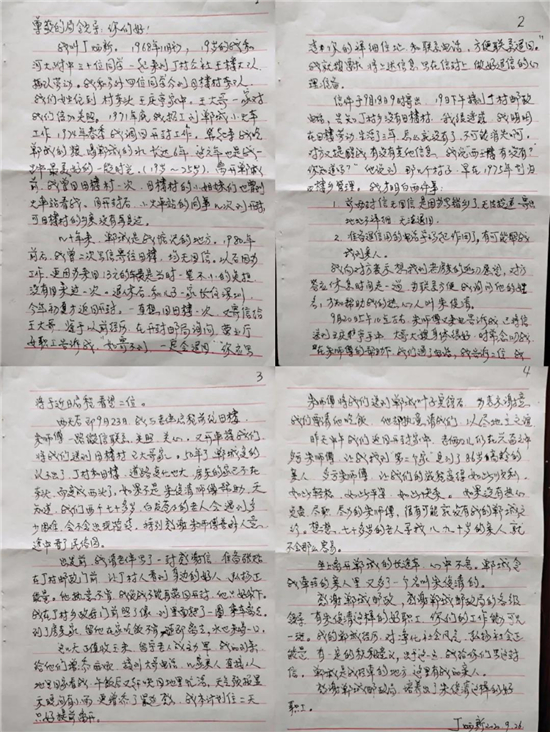 交談中,朱俊清得知寄信人丁阿姨是一名下鄉(xiāng)知青,收件人王先生是她插隊(duì)時(shí)的房東。從1968年至1971年底插隊(duì)時(shí),丁阿姨與河南大學(xué)附屬中學(xué)的4位同學(xué)曾居住在王先生家,一住就是三年。三年間,王先生一家視她們?nèi)缬H人,在生活上為她們提供了很多力所能及的幫助。1971年,她調(diào)至鄲城縣小火車站工作;因工作需要,1974年她又調(diào)回老家開封。沒想到,這一別就是46年。