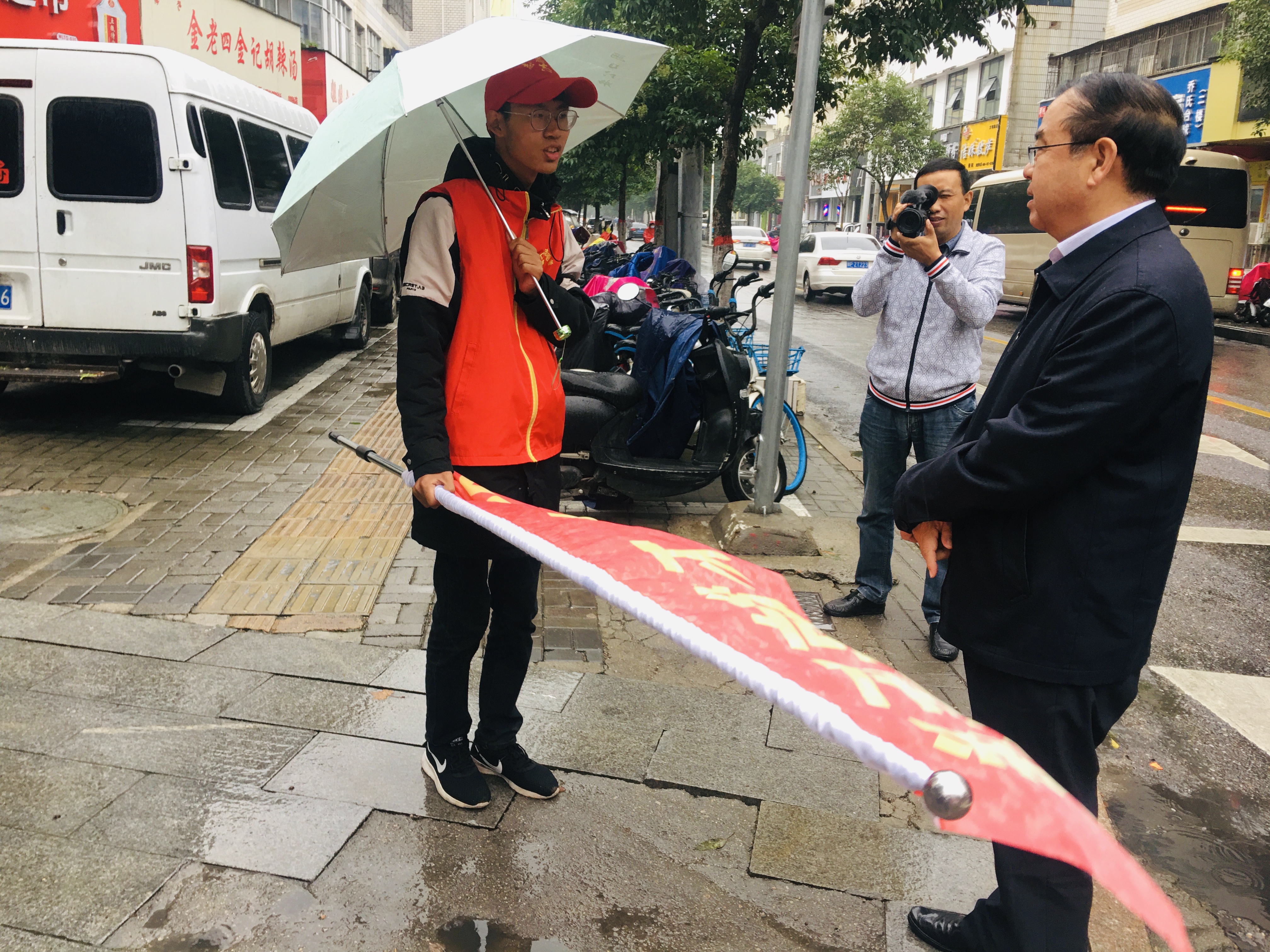 在文明路,劉國連由北向南隨機(jī)抽查分包單位工作人員和志愿者在崗情況,履行“路長制”職責(zé)。當(dāng)看到他們在雨中或疏導(dǎo)交通或打掃衛(wèi)生,劉國連幾次上前對他們認(rèn)真負(fù)責(zé)的工作態(tài)度進(jìn)行了表揚,對“創(chuàng)文”工作做出的貢獻(xiàn)表達(dá)敬意。他說,現(xiàn)在是“創(chuàng)文”決戰(zhàn)決勝最后沖刺的關(guān)鍵時刻,希望大家繼續(xù)發(fā)揚奉獻(xiàn)精神,發(fā)揮好志愿者的作用,為“創(chuàng)文”做出新的貢獻(xiàn)。