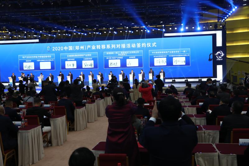 10月14日、15日,2020中國(鄭州)產(chǎn)業(yè)轉(zhuǎn)移系列對接活動在鄭州市舉行。15日上午,在鄭州國際會展中心軒轅堂舉行開幕式暨產(chǎn)業(yè)轉(zhuǎn)移合作簽約儀式,鄲城縣長李全林、縣政府黨組成員張仁杰帶領(lǐng)鄲城代表團參會,并成功簽約5個產(chǎn)業(yè)轉(zhuǎn)移項目,涉及食品、新能源、制造業(yè)、高新技術(shù)等諸多領(lǐng)域,簽約金額達31.6億元。