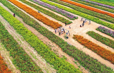 二○一八年以來,我省共創(chuàng)建224個(gè)“美麗小鎮(zhèn)”3388個(gè)“四美鄉(xiāng)村”94.6萬個(gè)“五美庭院” “十一”假期,游客在寧陵縣邏崗鎮(zhèn)黃老家村花海中賞花。該村打造生態(tài)花田小鎮(zhèn),吸引了眾多游客前來拍照游玩,有力提高了當(dāng)?shù)卮迕袷杖?。呂忠箱攝 |