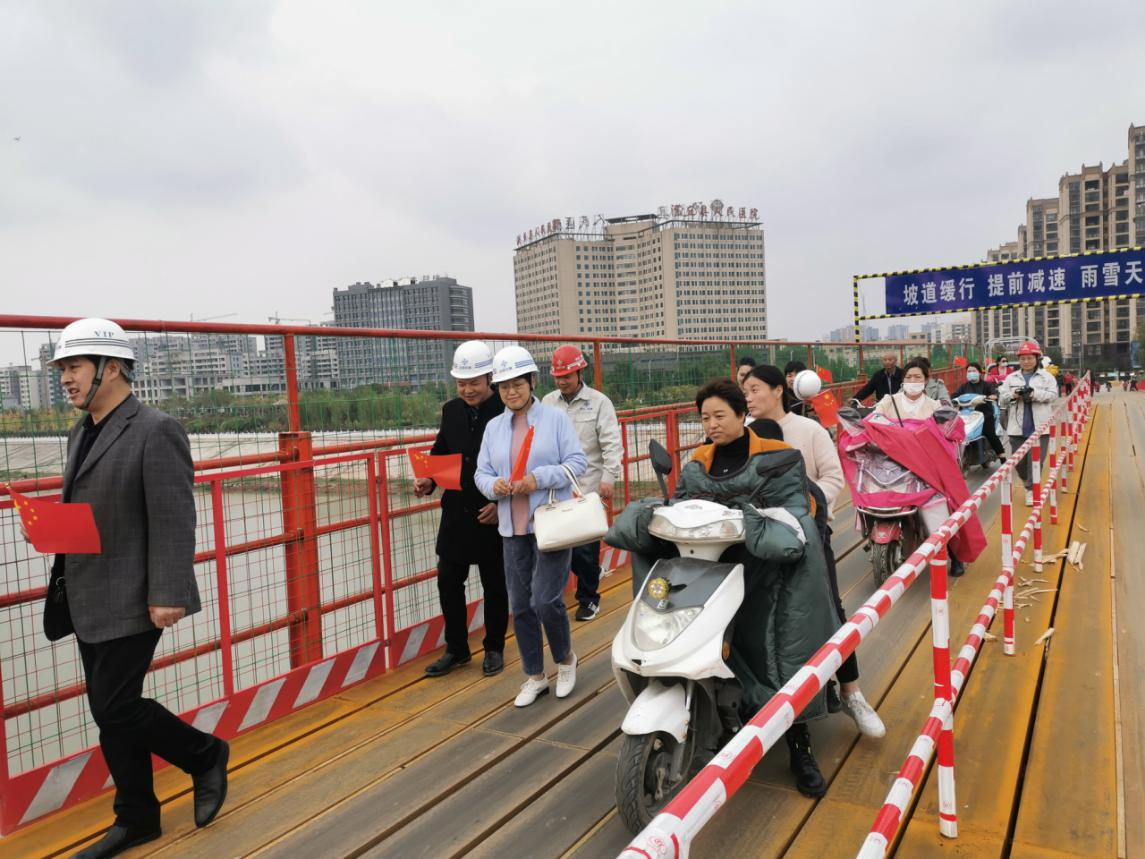 這位女士口中的便民橋位于潁濱公園內(nèi),由中交二航局沙潁河航道升級(jí)改造工程PPP項(xiàng)目部承建。 據(jù)悉,基于沙潁河升級(jí)改造,位于縣醫(yī)院東側(cè)的一座橋需要拆除。為方面行人通行,中交二航局沙潁河航道升級(jí)改造工程PPP項(xiàng)目部,歷經(jīng)兩個(gè)多月時(shí)間搭建完成。中交二航局沙潁河航道升級(jí)改造工程PPP項(xiàng)目部副部長(zhǎng)王子龍告訴記者,受老橋下游側(cè)跨河高壓電纜影響,項(xiàng)目部在上游側(cè)約120米處布置一座跨河鋼便橋,便橋長(zhǎng)266米,寬6.0米。為提高安全指數(shù),橋兩側(cè)的護(hù)欄高度由原計(jì)劃的1.30米,提升到1.80米。