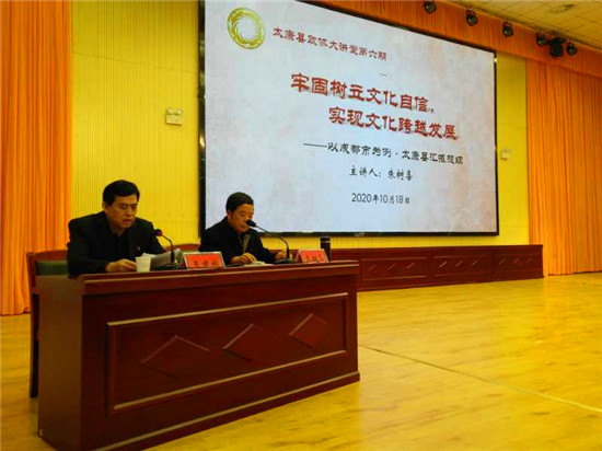 為弘揚(yáng)優(yōu)秀傳統(tǒng)文化,全面提升政協(xié)委員的政治業(yè)務(wù)素質(zhì)和文化理論素養(yǎng),著力破解太康文化發(fā)展的認(rèn)識和機(jī)制難題,10月18日上午,太康縣政協(xié)組織舉辦“牢固樹立文化自信 實(shí)現(xiàn)文化跨越發(fā)展”專題講座。王建林、閆家明、張新棟、于闐鎮(zhèn)、鄧昌鋒等縣領(lǐng)導(dǎo),縣直單位和鄉(xiāng)鎮(zhèn)領(lǐng)導(dǎo)班子成員,縣政協(xié)全體委員,省、市駐太政協(xié)委員,政協(xié)機(jī)關(guān)全體工作人員,太康縣第一高級中學(xué)的師生代表聆聽講座。