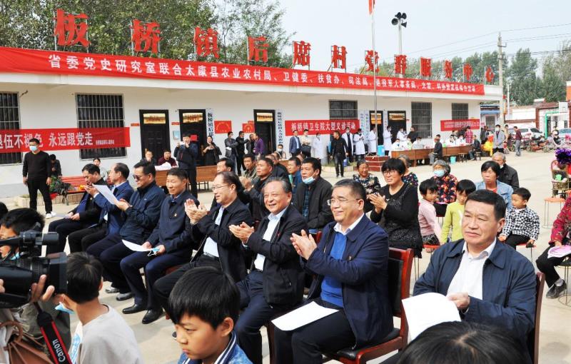 在后席村文化廣場(chǎng),路海江一行同后席村村民一起觀看了群眾自編自演節(jié)目,為5名受表彰的后席村“脫貧攻堅(jiān)先進(jìn)個(gè)人”代表佩戴綬帶、頒發(fā)證書,并與到后席村參加義診、送科技、送種子、送化肥、送政策的太康縣衛(wèi)健委、縣農(nóng)村農(nóng)業(yè)局、縣扶貧辦、縣司法局、縣退伍軍人事務(wù)管理局、縣文聯(lián)、縣科協(xié)等單位幫扶人員親切交談,對(duì)大家助力省委黨史研究室定點(diǎn)扶貧工作所付出的努力表示感謝。