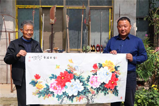 “感謝大家來看望我,真不知道說啥好,我給大家鞠個躬吧。”完顏三杰激動地說,“真沒想到這么多領(lǐng)導還牽掛著我,我一定多寫多畫,多為社會作貢獻?!?/p>