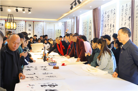 10月15日,重陽節(jié)。中國書法之鄉(xiāng)鄲城縣書協(xié)主席巴云山和資深書法家張樹銀、杜長青、崔傳明等人一道,在該縣八斗文化藝術(shù)中心舉行揮毫慶重陽的義寫活動。許多老藝術(shù)家和年輕學(xué)生歡聚一堂,過了一個(gè)別樣的重陽節(jié)。