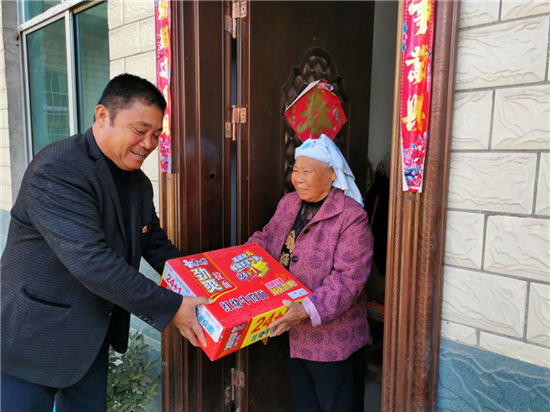 黃玉中說,重陽節(jié)一大早,女兒為他送來6斤豬肉,并祝他重陽節(jié)愉快,他方想起今天是重陽節(jié)。等女兒走后,他想著也要看望自己的‘父母’——全村13名五保老人、軍烈屬。于是,黃玉中籌備好物品,帶領(lǐng)村干部,對(duì)13個(gè)五保老人、軍烈屬一一節(jié)日慰問。