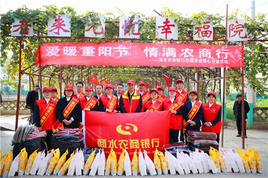 這是商水農(nóng)商銀行紀(jì)委書(shū)記、監(jiān)事長(zhǎng)張宇帶領(lǐng)該行志愿者服務(wù)隊(duì)正在開(kāi)展“愛(ài)暖重陽(yáng)節(jié) 情滿(mǎn)農(nóng)商行”走訪(fǎng)慰問(wèn)活動(dòng)。
