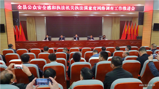 會(huì)上,張國慶就全縣公眾安全感和執(zhí)法機(jī)關(guān)執(zhí)法滿意度網(wǎng)絡(luò)調(diào)查工作,進(jìn)行再安排、再部署,并針對(duì)調(diào)查方式方法進(jìn)行了說明。會(huì)議要求,公眾安全感調(diào)查是全省政法綜治工作考評(píng)的一項(xiàng)重要指標(biāo),是對(duì)各地區(qū)一年來政法綜治工作、平安建設(shè)工作成效的集中反映。各級(jí)各單位要站在講政治的高度,進(jìn)一步統(tǒng)一思想,高度重視,明確責(zé)任,把公眾安全感和執(zhí)法機(jī)關(guān)執(zhí)法滿意度網(wǎng)絡(luò)調(diào)查工作作為當(dāng)前重中之重的工作來抓,進(jìn)一步加強(qiáng)全縣綜治和平安建設(shè)工作,全力以赴做好提升公眾安全感和執(zhí)法機(jī)關(guān)執(zhí)法滿意度工作。