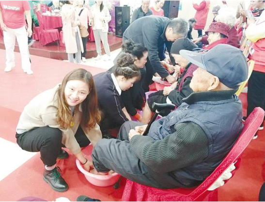 重陽節(jié)當(dāng)天,周口市總工會(huì)、周口市教體局、川匯區(qū)供銷社在鴻運(yùn)酒店舉辦“九九重陽節(jié) 濃濃敬老情”孝老愛親活動(dòng),邀請200多名社區(qū)老年人及家屬參加?;顒?dòng)現(xiàn)場,家屬為老人進(jìn)行了洗腳(如圖),主辦方安排了精彩的文藝演出,博得觀眾陣陣掌聲,讓社區(qū)老人過了一個(gè)歡樂祥和的重陽節(jié)。