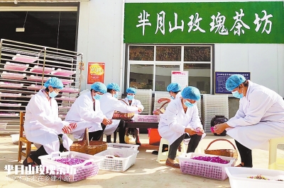 銀杏樹(shù)溝村村民在村扶貧車(chē)間分揀玫瑰花 |