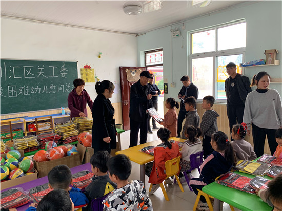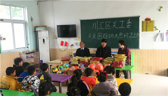 兒童是家庭的希望,是國家和民族的未來。10月27日上午,川匯區(qū)關(guān)工委組織開展了“愛心助成長 牽手向未來”關(guān)愛康樓郭莊新星幼兒園困境兒童慰問活動。川匯區(qū)關(guān)工委主任王啟峰、副主任方寶珍、副局長張萍帶領(lǐng)工作人員為孩子們帶去了書包、文具、籃球等。