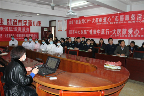 為普及健康素養(yǎng)基本知識與技能,倡導(dǎo)健康文明的生活方式,提高百姓的健康意識和自我保健能力,10月28日下午,由周口市衛(wèi)健委、川匯區(qū)衛(wèi)健委組織,市中心醫(yī)院、區(qū)健康教育所等單位承辦的“健康周口行·大醫(yī)獻愛心”志愿服務(wù)隊走進川匯區(qū)衛(wèi)生計生監(jiān)督所,為區(qū)衛(wèi)生計生監(jiān)督所的干部職工送上健康科普知識講座。
