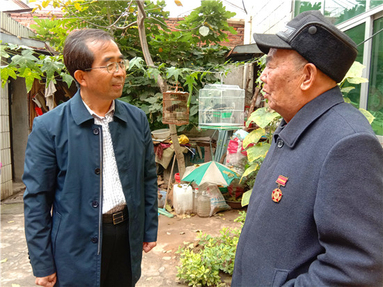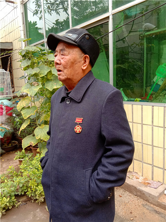 快到王景文家時(shí),記者與他取得了聯(lián)系,沒(méi)想到他竟到路口來(lái)迎記者,看到他硬朗的身板和健康的身體,聽(tīng)他說(shuō)話(huà)聲音洪亮、底氣十足,記者還是很欣慰的,畢竟經(jīng)歷了70年的風(fēng)雨洗禮,還能行走自如、聲如洪鐘,的確是寶刀不老。被他迎進(jìn)家,其老伴滿(mǎn)頭銀發(fā),喜瞇瞇地讓記者進(jìn)屋,王老先生去里屋找出了一枚抗美援朝紀(jì)念章,并說(shuō)抗美援朝和平紀(jì)念章等物品都放丟了,找不到了,有些遺憾。記者就開(kāi)門(mén)見(jiàn)山地說(shuō)要聽(tīng)他講講參加抗美援朝的故事,他不好意思地笑了:“講不好,年齡大了,記性不好,有好多事都記不清了……”當(dāng)問(wèn)起他老家是哪里時(shí),王老先生還是打開(kāi)了話(huà)匣子。1934年,他出生在淮陽(yáng)縣劉振屯鄉(xiāng)耿樓大隊(duì)李樓村,由于家境貧寒,他從小就跟隨家人一路逃荒要飯來(lái)到了扶溝,但日子還是艱難,為了能活命,父母無(wú)奈把他送給了扶溝縣城一戶(hù)人家,從此他就成了這戶(hù)人家的孩子,并于1951年5月結(jié)婚??山Y(jié)婚沒(méi)幾個(gè)月,縣里就開(kāi)始征兵了。當(dāng)兵離家,要丟下妻子,更何況妻子已有孕在身,他真舍不得;保家衛(wèi)國(guó),是義務(wù)是責(zé)任是擔(dān)當(dāng),他責(zé)無(wú)旁貸。家與國(guó),他毅然選擇去當(dāng)兵。與新婚燕爾的妻子依依惜別,他踏上了行軍的征程。那時(shí)可沒(méi)有車(chē)接送,去往目的地,全靠?jī)蓷l腿,行軍與訓(xùn)練的苦與累難以想象。問(wèn)他不害怕當(dāng)兵打仗嗎?他回答:“不怕!”語(yǔ)氣堅(jiān)定而有力。生活的磨難讓他對(duì)安穩(wěn)的生活有一種渴望,他明白戰(zhàn)爭(zhēng)會(huì)讓國(guó)家陷入混亂不堪的局面,老百姓的生活會(huì)更加艱難,為了祖國(guó)的和平安寧和兄弟姐妹的幸福,他愿意去當(dāng)兵打仗。保家衛(wèi)國(guó)的種子早已種在了他的心里。