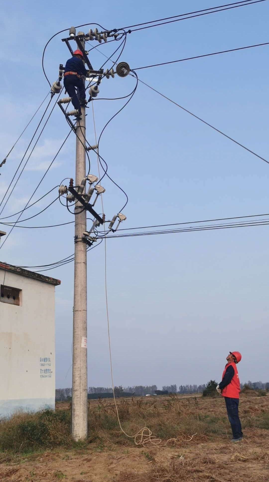 鄉(xiāng)村振興,電力先行。近日,在西華縣紅花集鎮(zhèn)杜崗村,國網(wǎng)西華縣供電公司城關(guān)供電所工作人員正在加班加點對該村的農(nóng)村電力提灌站高壓線路進行施工作業(yè),為農(nóng)村經(jīng)濟發(fā)展和脫貧致富提供用電保障。①15