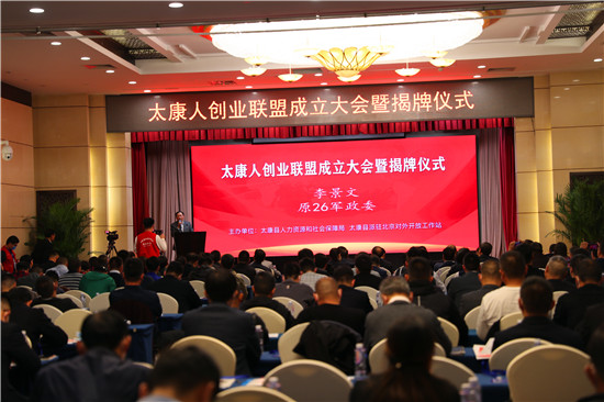 11月1日,由太康縣人力資源和社會(huì)保障局、太康縣派駐北京對(duì)外開放工作站共同舉行的太康人創(chuàng)業(yè)聯(lián)盟成立暨揭牌儀式在北京河南大廈會(huì)議室隆重舉行。原26軍政委李景文將軍,中科院院士張知彬,共青團(tuán)北京市委書記李軍會(huì),原中國(guó)節(jié)能環(huán)保集團(tuán)書記楊東錄,原中國(guó)電建集團(tuán)副書記陳永錄,周口市政府駐北京聯(lián)絡(luò)處主任胡新華,北京太康商會(huì)會(huì)長(zhǎng)、太康人創(chuàng)業(yè)聯(lián)盟會(huì)長(zhǎng)耿清讓等在京領(lǐng)導(dǎo)、商界代表和周口市人力資源和社會(huì)保障局黨組成員、總就業(yè)指導(dǎo)師陳振奇及太康縣政協(xié)主席王建林,縣委常委、縣政府黨組副書記張雪芳,縣政協(xié)副主席丁明禮等縣領(lǐng)導(dǎo)出席會(huì)議。此次會(huì)議的主題是“創(chuàng)新 創(chuàng)業(yè) 共融 共贏”。會(huì)議由縣政協(xié)主席王建林主持。