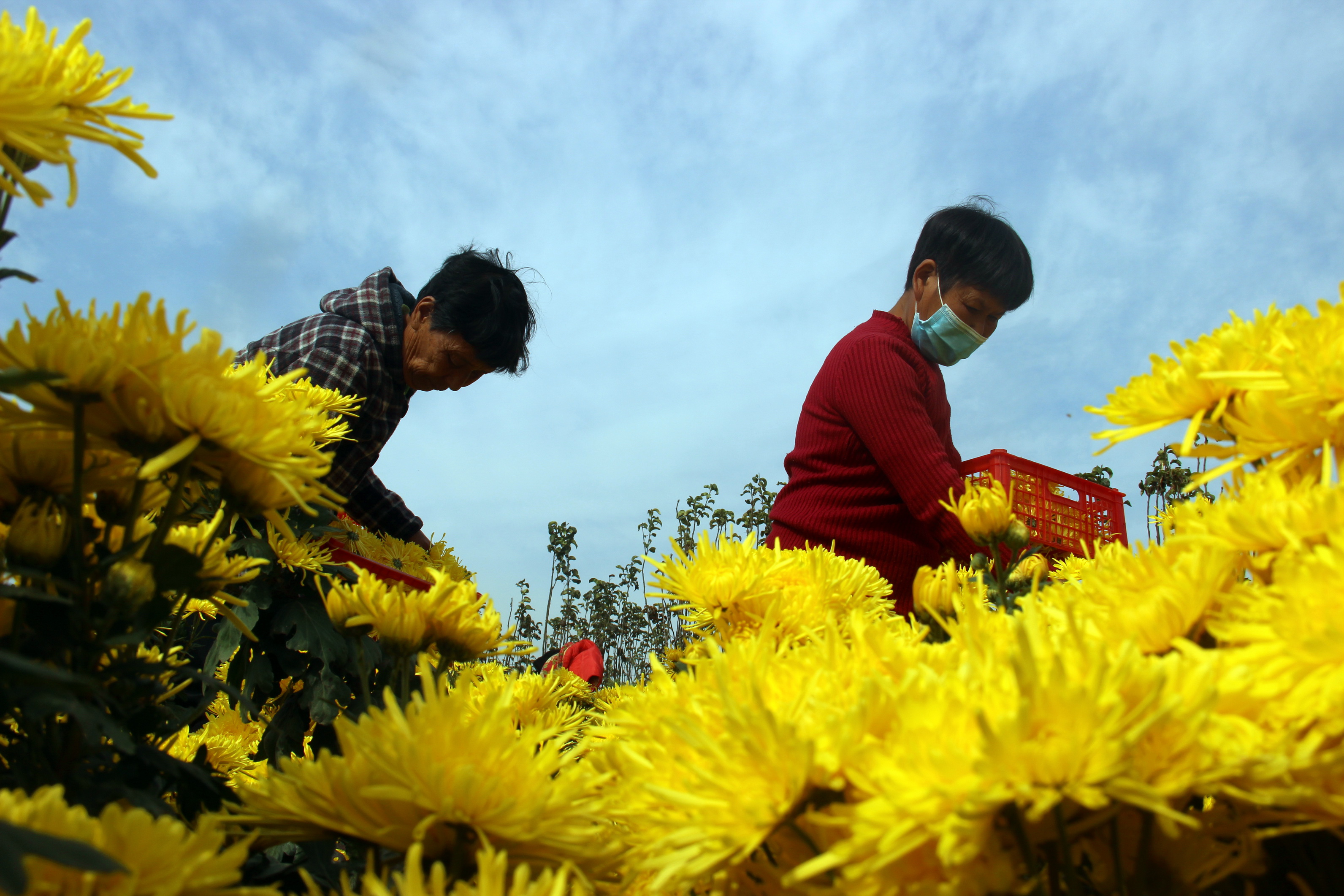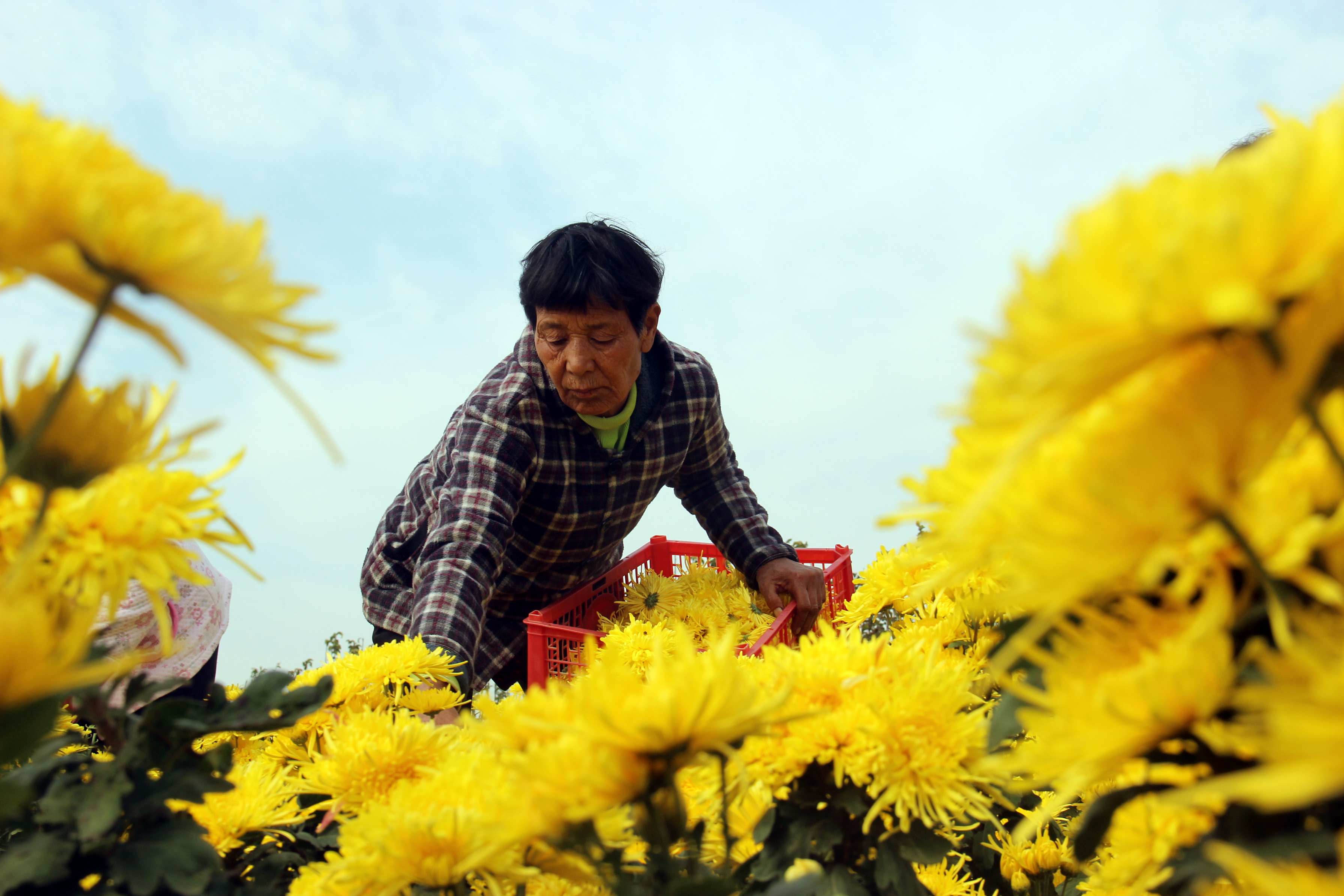 11月3日,商水縣郝崗鎮(zhèn)大路李村貧困戶婦女在李華生的合作社采收金絲黃菊。郝崗鎮(zhèn)政府鼓勵大路李村負責人李華生引進金絲黃菊種植帶動貧困戶增收致富,目前該村種植面積達到百畝,畝效益均在6000元以上。記者付永奇通訊員呂耀光攝