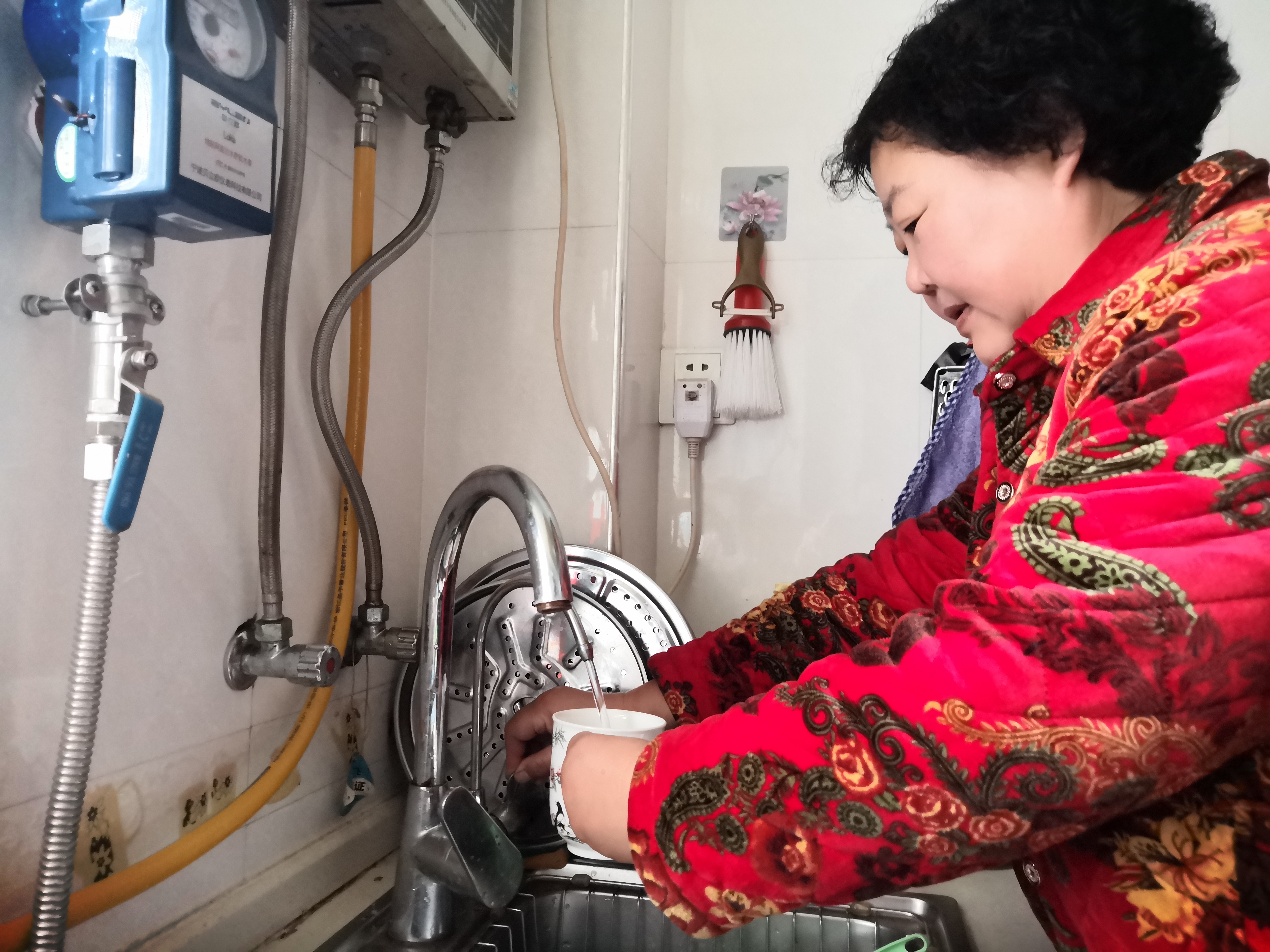 西華縣溫泉花園小區(qū)業(yè)主尹小月女士家中使用優(yōu)質(zhì)管道直飲水半年之久,廚房的淘菜池旁安裝了兩個水龍頭,一個輸出自來水,另一個則是優(yōu)質(zhì)管道直飲水?!白詠硭脕硖圆恕⑾赐?,直飲水用來喝水、做飯?!艾F(xiàn)在再讓我喝自來水就感覺有點澀。”說著,她拿起水杯接了一杯直飲水,一飲而盡?!?毛錢一升,比桶裝水便宜,普通老百姓都喝得起”尹女士道。