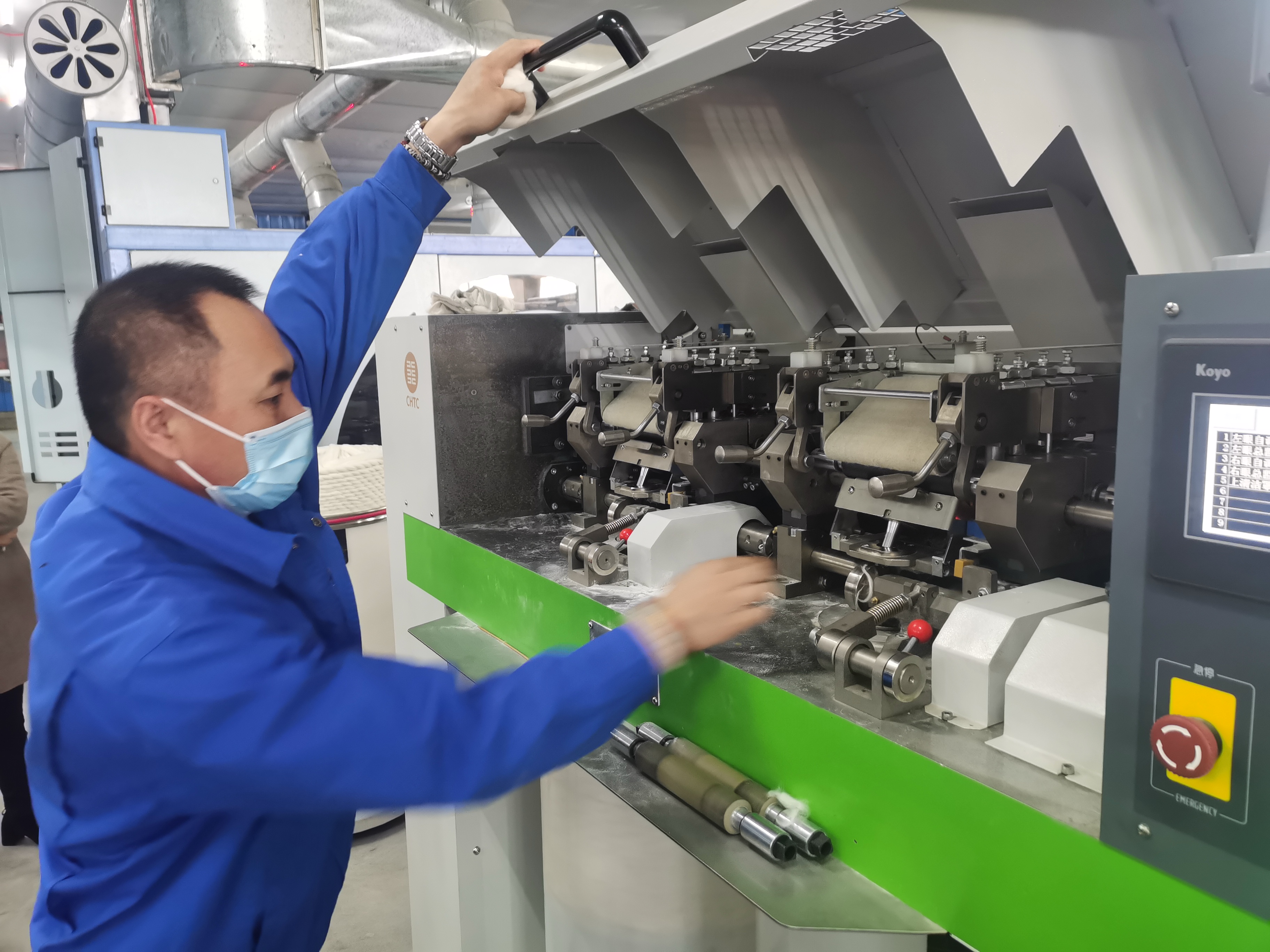 11月9日,扶溝縣博發(fā)紡織有限公司一期2萬紗錠生產(chǎn)線進口設(shè)備安裝完畢,正在試車。