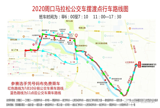 此外, 記者還從大賽組委會(huì)獲悉,2020周口馬拉松比賽公交車擺渡點(diǎn)行車路線圖也已公布,參賽選手憑號(hào)碼布可以免費(fèi)乘車,去時(shí)乘車路線為:文明路口——工農(nóng)路口——大慶路停車點(diǎn)——慶豐街——景園停車點(diǎn)——奧蘭停車點(diǎn)——公務(wù)員A區(qū)停車點(diǎn)——建業(yè)北門停車點(diǎn)周口大道——碧桂園停車點(diǎn)——堤頂北路——武盛大道——引黃調(diào)蓄風(fēng)景區(qū)門口擺渡車乘車起點(diǎn);回來(lái)時(shí)路線為:引黃調(diào)蓄風(fēng)景區(qū)——武盛大道——堤頂北路——碧桂園停車點(diǎn)——周口大道——慶豐街——建業(yè)北門停車點(diǎn)——公務(wù)員A區(qū)停車點(diǎn)——奧蘭停車點(diǎn)——景園停車點(diǎn)——大慶路停車點(diǎn)——七一路,其中班車運(yùn)行時(shí)間為早6:00至7:10,11:00至17:30。因場(chǎng)地受限,活動(dòng)當(dāng)天的停車區(qū)域分為兩處,一是引黃調(diào)蓄風(fēng)景區(qū)西門南北兩側(cè)便道;二是風(fēng)景區(qū)西門向南路西600米處東西無(wú)名路。