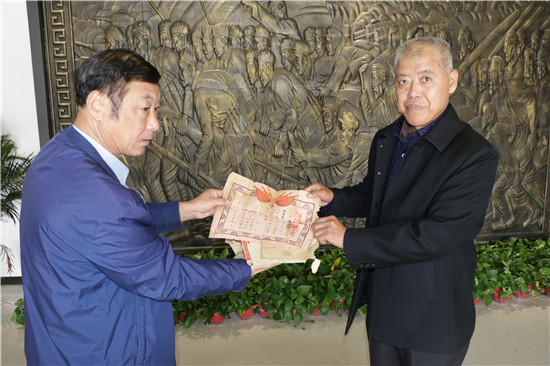 太康籍烈士李鴻勛的兒子李海燕日前向太康縣革命烈士事跡陳列館捐贈了其父親李鴻勛烈士生前物品。這些遺物中有烈士用生命換回的“獎狀”,有見證著烈士成長足跡的各種證書、老照片等。