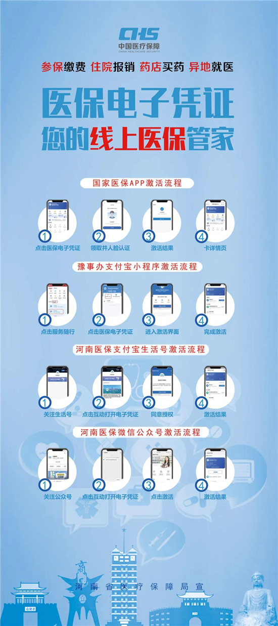醫(yī)保電子憑證不依托實體卡,領(lǐng)取方式簡單,參保人員可以直接通過國家醫(yī)保App或者通過微信、支付寶,以及經(jīng)由國家醫(yī)保局和河南省醫(yī)療保障局認(rèn)證授權(quán)的第三方渠道,自助進(jìn)行認(rèn)證后激活使用,不需要到服務(wù)大廳領(lǐng)取和激活。