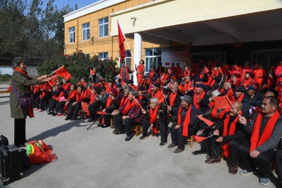 近年來,商水縣依托各鄉(xiāng)鎮(zhèn)敬老院、衛(wèi)生院認(rèn)真開展醫(yī)養(yǎng)結(jié)合工作,使全縣數(shù)千特困老人集中生活、統(tǒng)一醫(yī)療,實(shí)現(xiàn)了老有所養(yǎng)、老有所醫(yī)、老有所樂,讓他們過上了幸福的晚年生活。圖為練集鎮(zhèn)醫(yī)養(yǎng)結(jié)合敬老院在組織院民唱紅歌、看演出。②18記者付永奇攝
