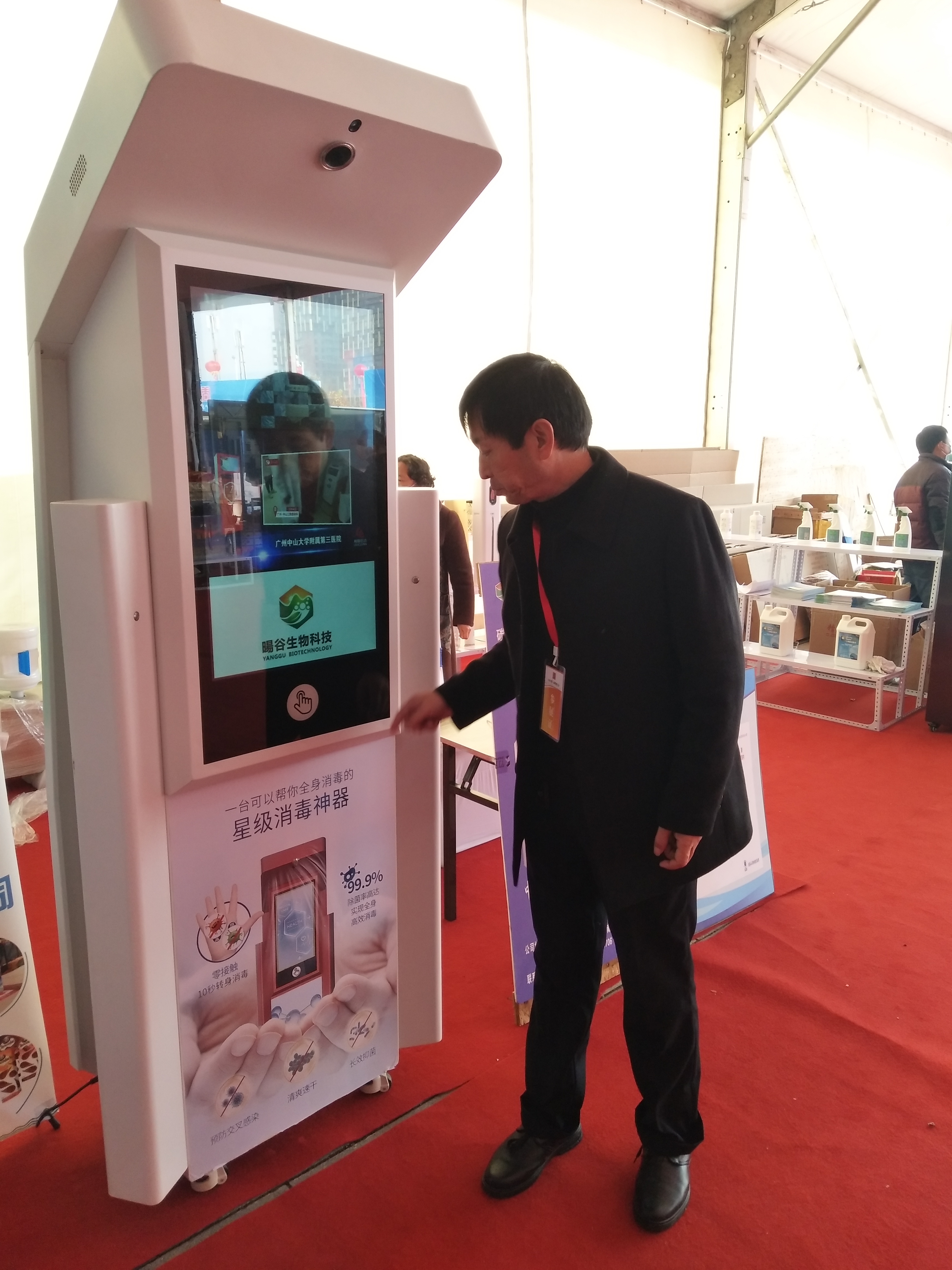 手掌往感控區(qū)上輕輕一罩,液晶屏四角就噴出霧化消毒液,大概持續(xù)10秒,足夠人轉(zhuǎn)一圈做周身消毒——在周商產(chǎn)品展示展覽大廳的西南角,北京陽谷生物科技有限公司市場部總監(jiān) 、項城人張清峰在介紹“人體感應(yīng)消毒機”,引得市民紛紛圍觀體驗。由于消毒液沒有異味,部分市民質(zhì)疑是清水,對此張清峰說:“我們用的是‘竹芳牌’碳酸型微酸性次氯酸消毒液,我們的消毒機主要是面向校園推廣的,給孩子用的東西除了要有效,還得保證安全溫和,碳酸型的消毒液就沒有這么大的刺激性?!睋?jù)張清峰介紹,“人體感應(yīng)消毒機”是今年五月下旬生產(chǎn)的新品,目前處在推廣階段,“當?shù)弥芸谝k第一屆周商大會的消息,我第一時間想到要把消毒機展示給家鄉(xiāng)父老。我是個在北京打拼十多年的項城人,目前河南分公司由我負責(zé),項城市政府給了我很多支持?!?/p>